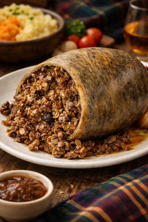 Traditionally, haggis is made from sheep’s heart, liver, and lungs, mixed with onions, oatmeal, spices, and seasoning, then encased and slowly simmered. Today, many cooks opt for butcher-prepared haggis or vegetarian versions, but the soul of the dish remains the same.