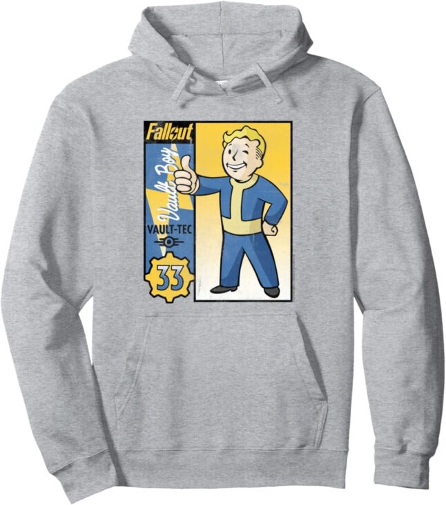 - Amazon: “Vault-Tec hoodie” or “Fallout clothing”