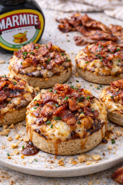 Cheesy Marmite Crumpets With Crispy Bacon