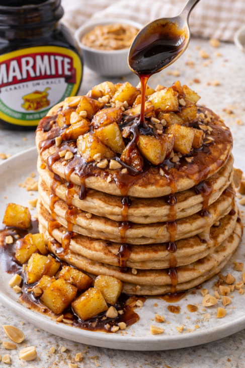 Marmite & Peanut Butter American Pancakes With Caramelized Apples