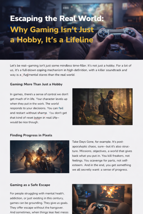 In titles like Days Gone, you’re navigating a post-apocalyptic world. It’s messy, brutal, and high-stakes—yet somehow it feels easier than real life. Because in that game, the chaos makes sense. You know the rules. You know what’s expected of you. And when you mess up, you respawn.